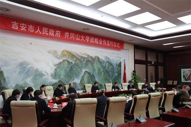 2021年1月13日,吉安市政府和井冈山大学签署战略合作协议,共同推动校地高质量跨越式发展。双方依据发展需求开展全方位合作,全力打造“发展共同体”,促进产学研用融合发展,努力服务地方经济社会发展。