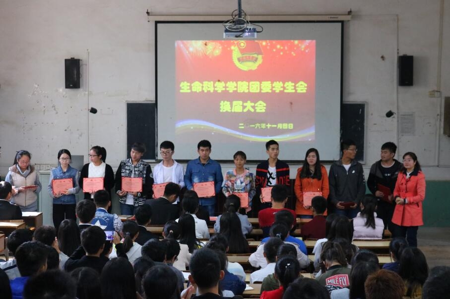 11月4日中午,我院团委学生会换届大会在2栋209成功举行。院团委副书记吴丽花老师、团委学生会全体成员及各班班长、团支书共一百一十余人参会。会议由第十届团委学生会副主席赵少宏主持。