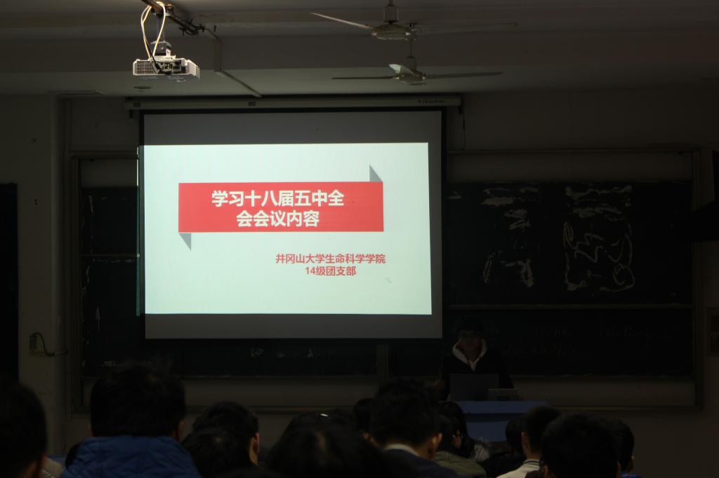 活动开始,大家齐唱共青团团歌,在嘹亮的歌声中,此次团日活动拉开帷幕。首先,由张绍刚同学为大家讲解十八届五中全会的主要内容,从奋斗目标、新理念、关键词等方面进行了十八届五中全会的详细解读。大家听了后都很受启发,积极地发表了自己的看法,学习活动现场气氛活跃。在知识问答环节,大家都积极踊跃的参加,争相发表自己对社会主义核心价值观、井冈山精神、十八届五中全会精神的理解,将活动推向高潮。