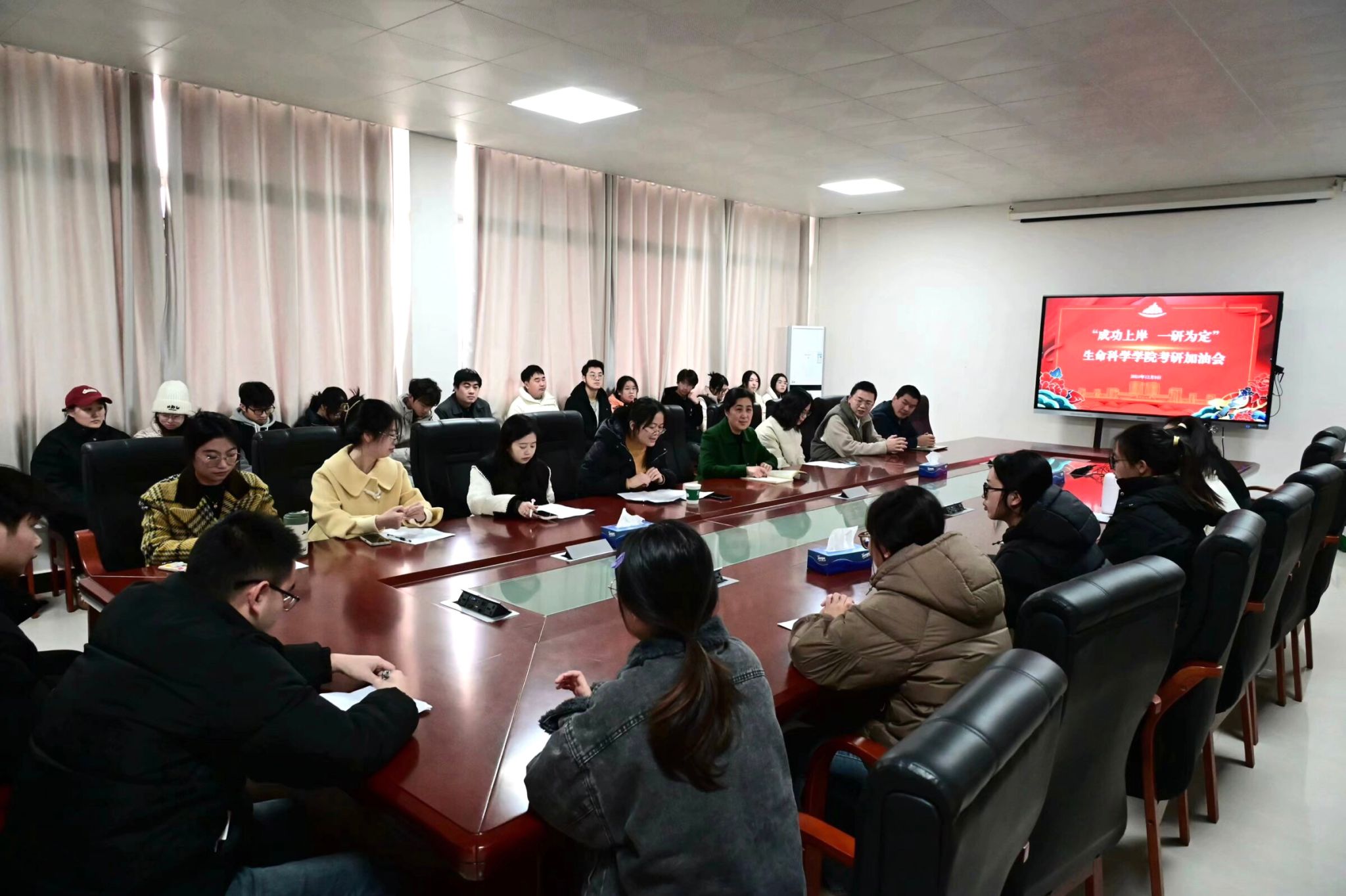 为激发我院学子考研斗志,增强考研自信,缓解考研压力,12月9日,我院举行“成功上岸,一研为定”2025届考研冲刺加油会,院党委书记彭青,青年教师代表熊静,团委学生科老师和25届考研学生代表参加,院党委副书记何旭梅主持会议。