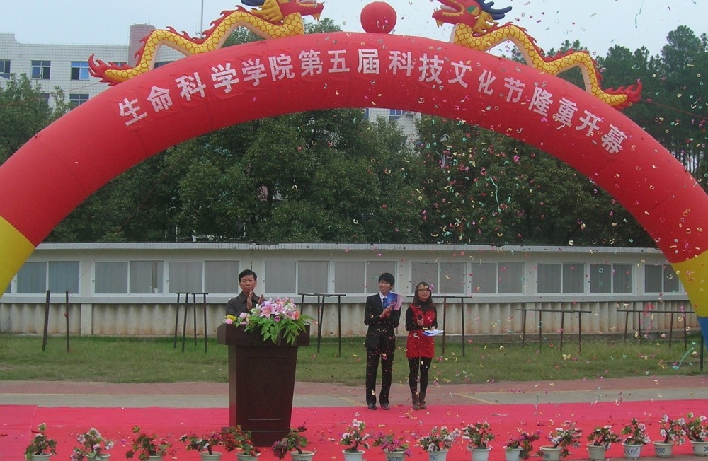 10月30日上午,学校第五栋教学楼旁的露天篮球场上,人头攒动, 歌声飞扬,我院第五届科技文化节隆重开幕。学校团委书记郭新春、学院党委书记许斌、副书记肖南、副院长胡文海、副院长黄族豪、井冈山生态环境研究所副所长段世华及部分教师出席了开幕式。现场有近千名学生到场观看并参与了活动。