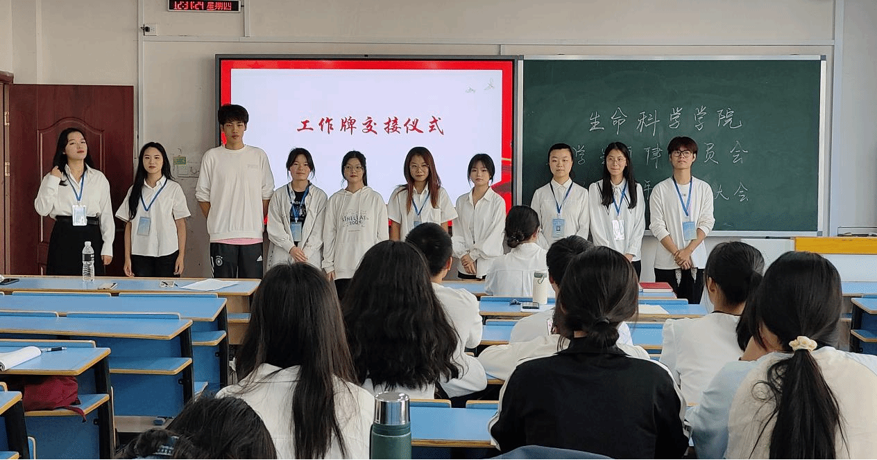 肖虹作总结发言,先是对大家的成长表示肯定,并提出三点希望:一是要坚定理想信念,抓住发展机遇;二是要明确职责分工,加强组织建设;三是要扎实专业基础,努力提升自我。此外,会上还开展了工作牌交接仪式和学生干部宣誓。