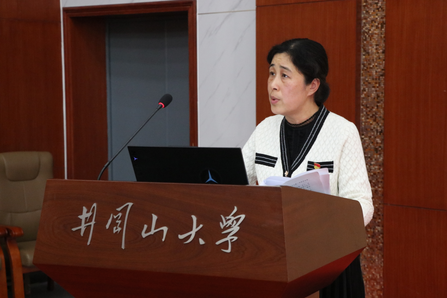 彭青以“志存高远,立志成才”为主题,给新生上了开学第一课,要求新生要认真学习党的精神,培育爱党爱国爱民的家国情怀,扎实学好专业知识,加强自我管理,做一个包容他人、有道德有品位的人。