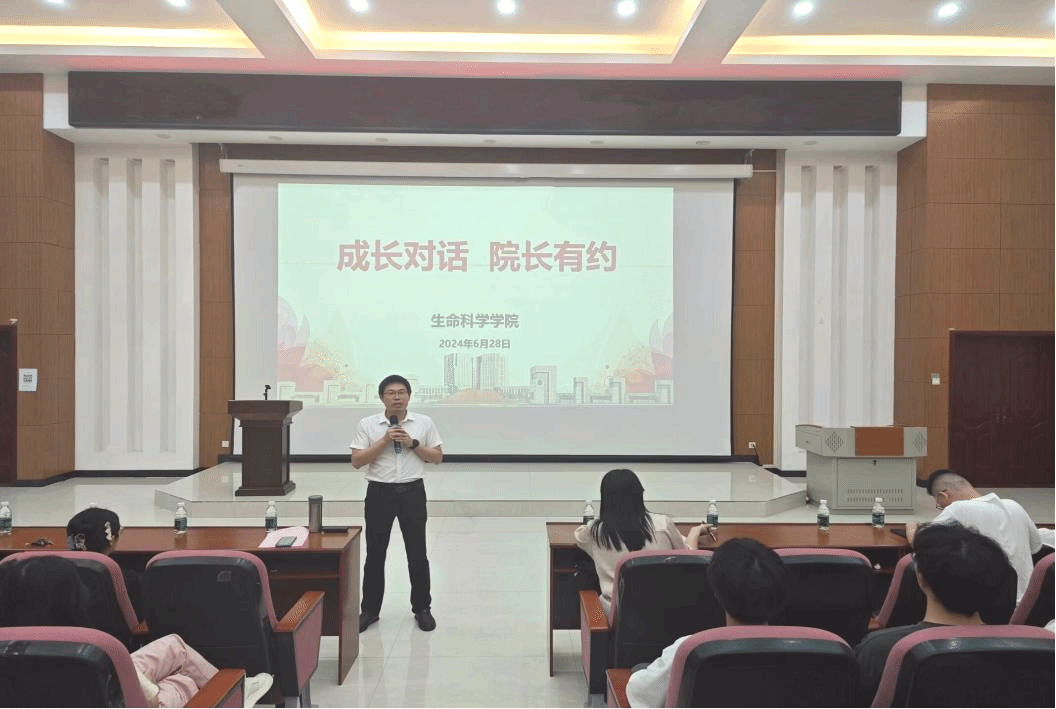 为深入落实立德树人根本任务,帮助青年学子进一步明确人生方向。6月28日晚,生命科学学院在21栋306报告厅举办“成长对话 院长有约”活动。院长贺根和与学院2022级在校生聚焦专业学习及未来规划展开深入交流,共话成长与发展。学院2022级班主任、全体辅导员、2022级全体在校生共计200多人参加,活动由学院党委副书记何旭梅主持。