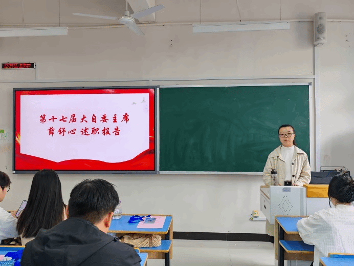 为充分发挥学生的主体作用,进一步加强学生组织建设,2024年10月31日中午,学院大自委于21栋105教室举行了2024-2025学年换届大会。分管老师、专职辅导员肖虹老师出席,学院大自委第十七届委员、第十八届全体成员参加,大会由第十八届副主席齐文圣主持。