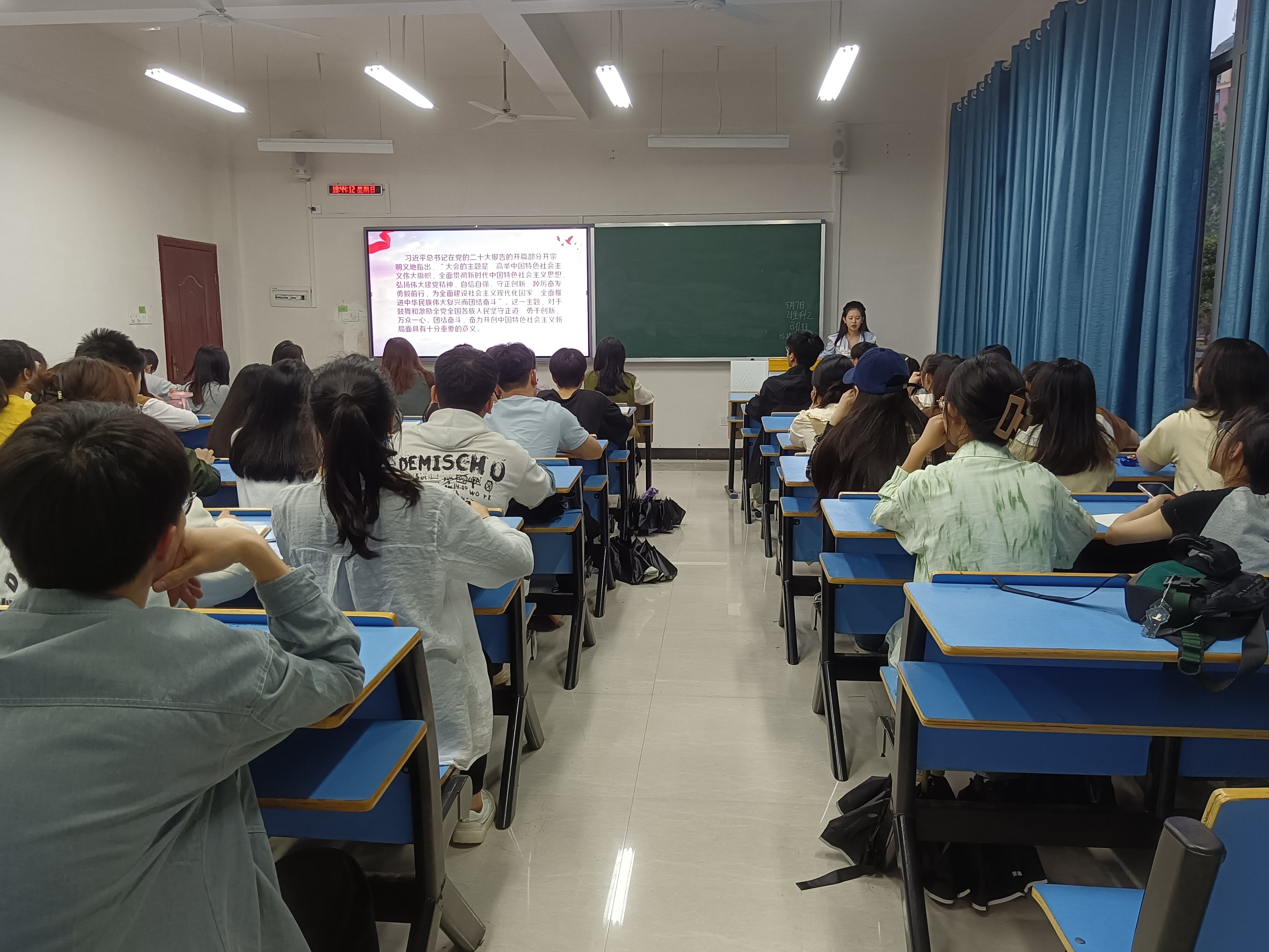 为深入学习宣传贯彻党的二十大精神,把我院入党积极分子的思想和行动统一到党的二十大精神上来,5月7日晚,我院学生支部书记任梦雅在21栋102教室为入党积极分子进行理论培训。