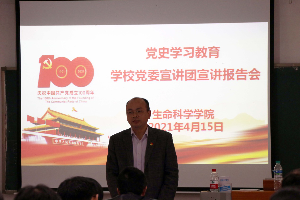 4月15日下午,学院在9-107大教室举办党史学习教育宣讲报告会,院长黄族豪主持,学院领导班子成员和全体师生党员参加。学校党委党史学习教育宣讲团成员、马克思主义学院副院长石劲松博士以《中国共产党百年奋斗历程和优良传统》为题,讲授了一堂深刻的党史学习教育课。