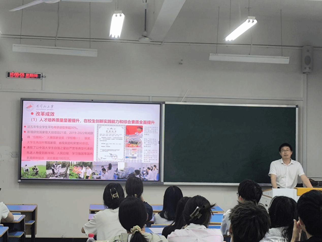 根据学院党委党纪学习教育安排,为激发学生的进取精神和奋斗意识,引导学生骨干发挥作用,5月9日下午,学院在21栋104教室举行了以“培养一流人才,建设一流学院”为主题的专题党课,学院院长贺根和主讲,入党积极分子、映山红班学员参加。