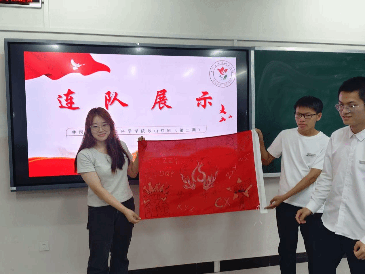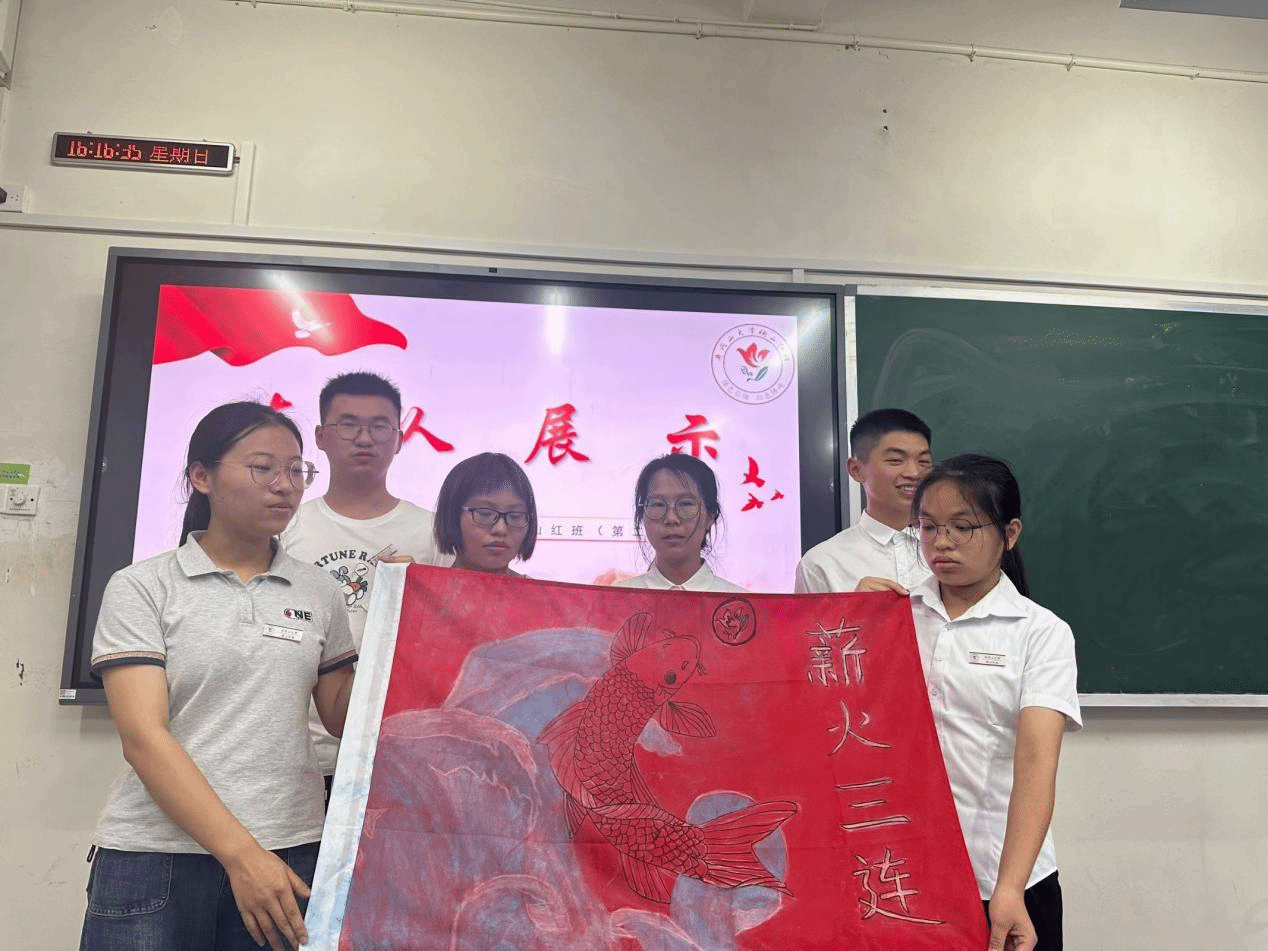 活动中,各连队成员积极参与到连旗设计,展现了他们的创意和团队合作精神。连队风采展示环节更是将活动推向高潮,每个连队都展示了自己设计好的连队名称、连旗设计理念、连歌和连队口号。这一过程不仅充分发挥了学员们的创造力和想象力,也锻炼了动手实践能力,也让他们更加深刻地理解了三湾改编的历史意义。