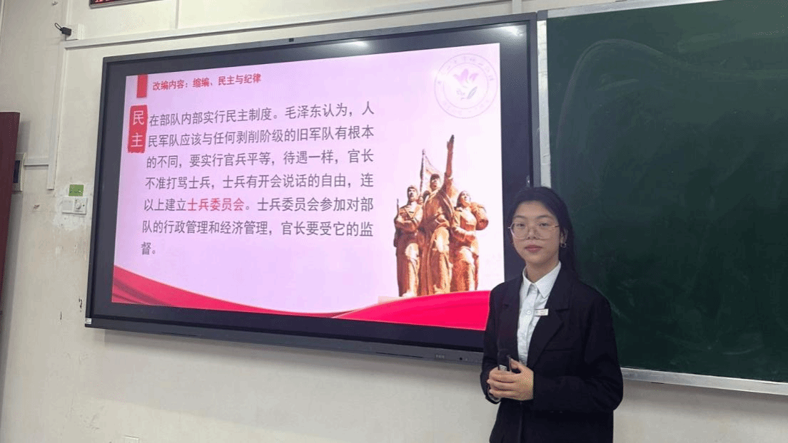 为深化学生对中国革命历史的理解和认识,井冈山大学映山红班5月19日下午在21栋105教室举办了三湾改编模拟场景教学活动,本次活动由组织委员杨宇菲主讲,映山红班全体成员参与。