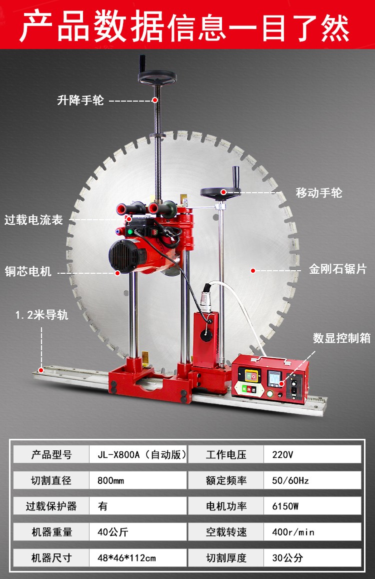 德赢VWIN切墙机工程专业钢筋混凝土墙面墙壁切割机墙锯水锯JL-X800A 800型自动版