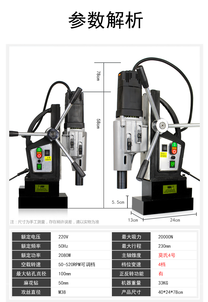 德赢VWIN380V磁座钻大功率二档变速正反转磁力钻取芯钻JLZ-32/38/49